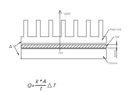 When a heat source is brought into contact with a heatsink, the solid surfaces do not achieve perfect contact in practice.