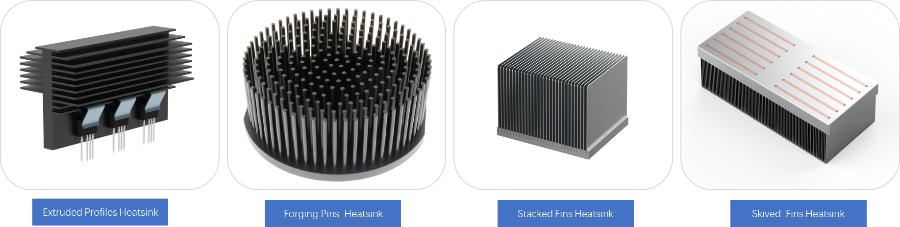Heatsinks can be manufactured in a variety of ways depending on the required performance, cost and volume. These include: