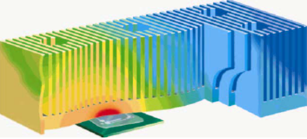 In many applications, the device is an electronic component (e.g. CPU, GPU, ASIC, FET ,IGBT etc.) and the surrounding fluid is air. The device transfers heat to the heatsink by conduction. The primary mechanism of heat transfer from the heatsink is convection, although radiation also has a minor influence.